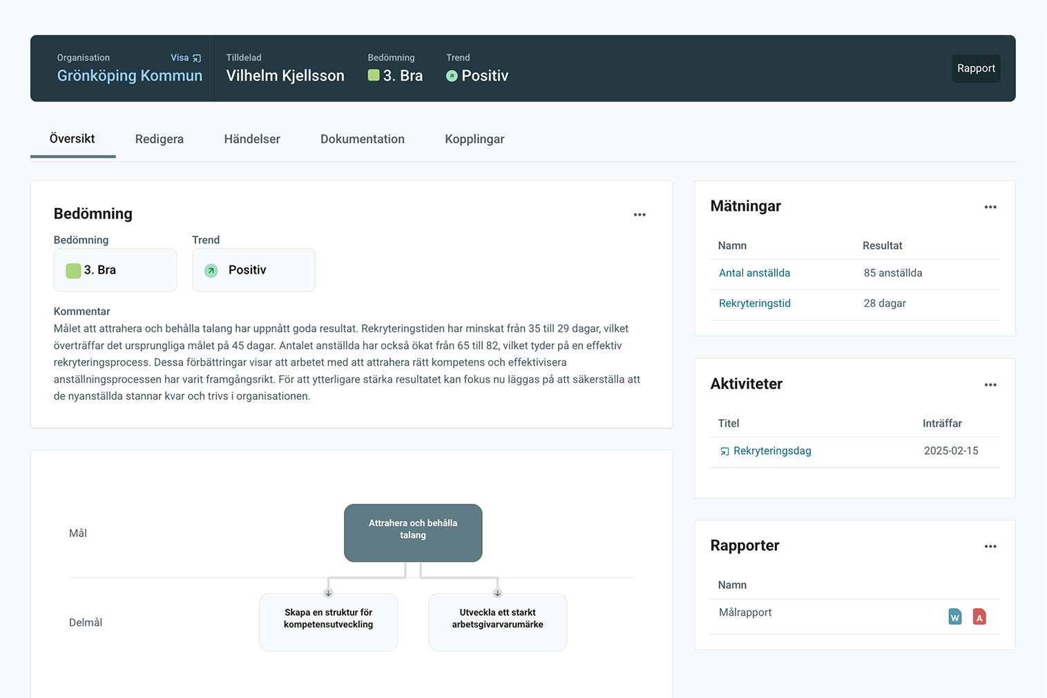 • Mål och mätning görs och följs upp kontinuerligt, med realtidsdata och tydliga rapporter.